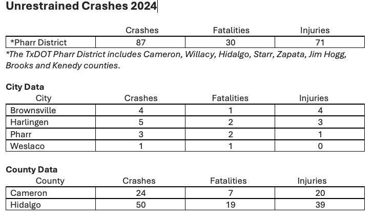 “We all think a crash will never happen to us, but it can happen any time we get in a vehicle,” TxDOT Executive Director Marc Williams said. “A seat belt can save your life or prevent a serious injury, but only if you’re wearing it. Take those quick seconds to buckle your seat belt everytime, day and night.”