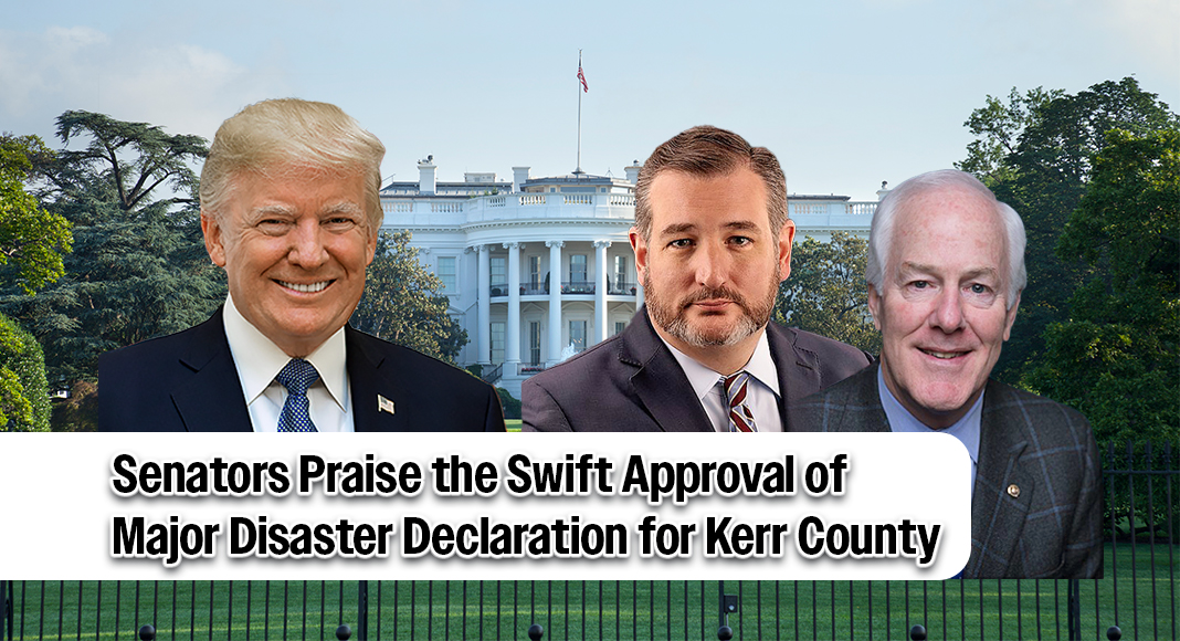 WASHINGTON, D.C. – U.S. Senators Ted Cruz (R-Texas) and John Cornyn (R-Texas) thanked President Donald Trump for his formal approval of Texas Governor Greg Abbott’s request for a federal emergency disaster declaration due to devastating flooding in Kerrville and surrounding areas.