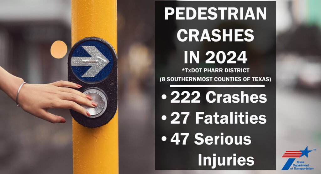 - In the Pharr District in 2024, there were 222 traffic crashes involving pedestrians, resulting in 27 pedestrian fatalities and 47 pedestrian serious injuries.
