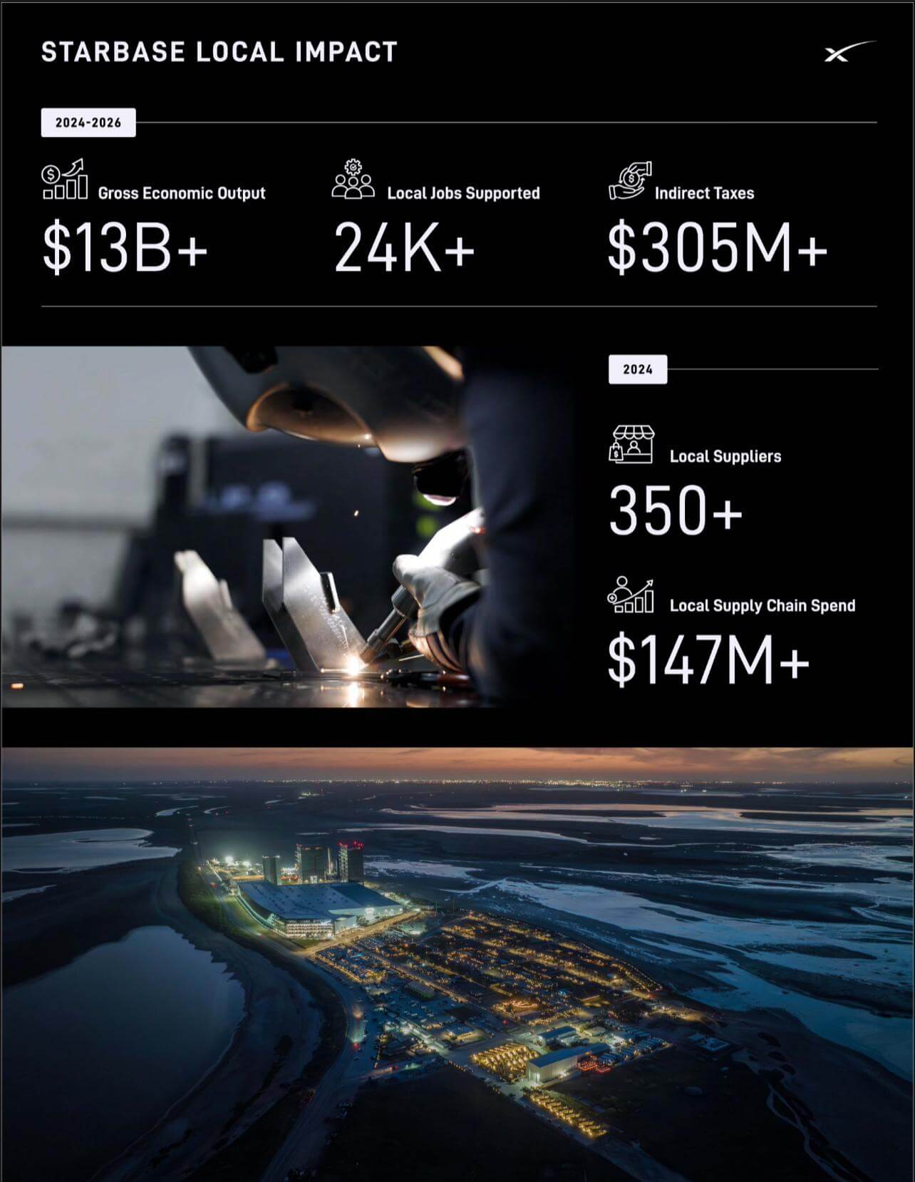 Cameron County shared the updated Starbase Local Impact report provided by Space Exploration Technologies Corp.(SpaceX), showcasing unprecedented growth spurred by Starship production, launch activities at Boca Chica and a transition of corporate headquarters from Hawthorne, CA to Cameron County and Starbase, TX.
