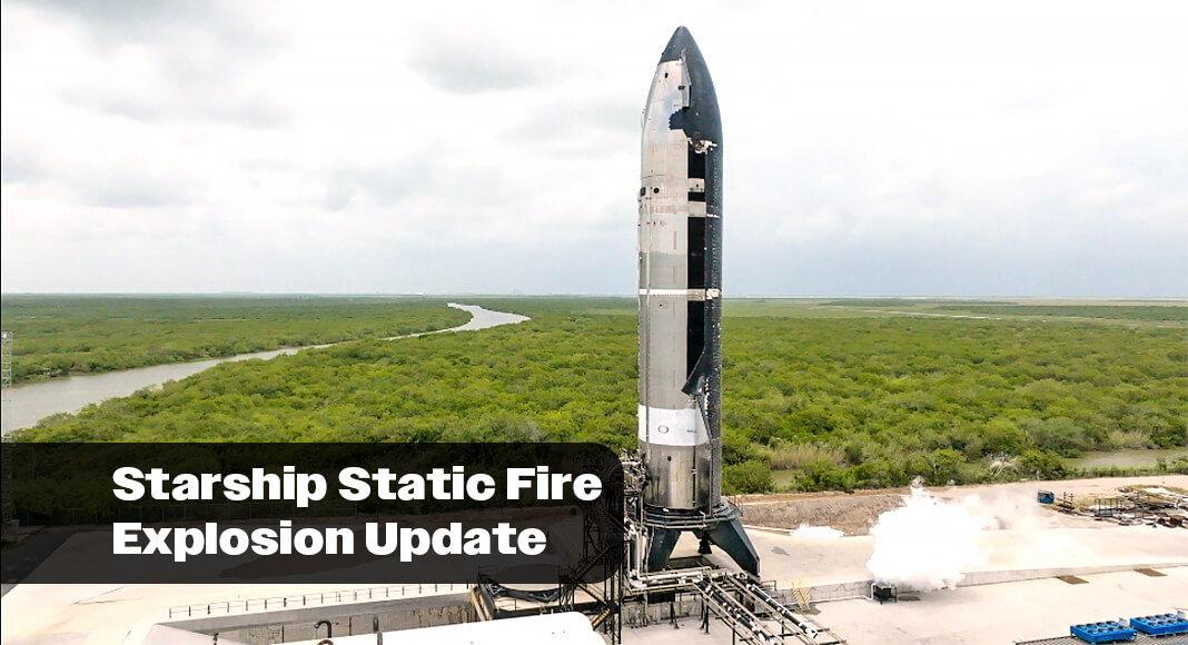 After completing a single-engine static fire earlier this week, the vehicle was in the process of loading cryogenic propellant for a six-engine static fire when a sudden energetic event resulted in the complete loss of Starship and damage to the immediate area surrounding the stand. The explosion ignited several fires at the test site which remains clear of personnel and will be assessed once it has been determined to be safe to approach. Individuals should not attempt to approach the area while safing operations continue.