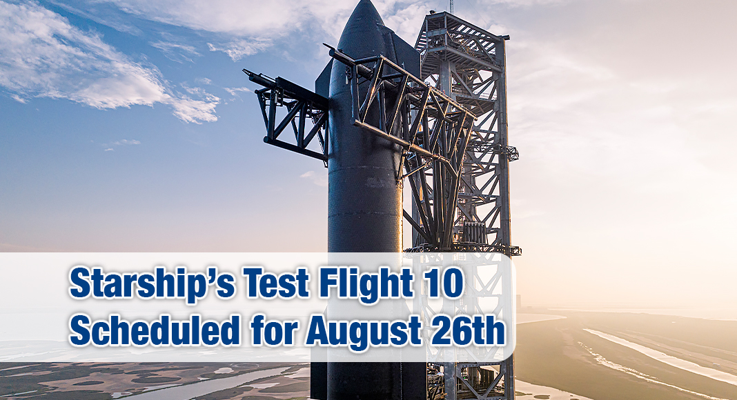 STARBASE, Texas – The tenth flight test of Starship is preparing to launch as soon as Monday, August 26th. The launch window will open at 6:30 p.m. CT.