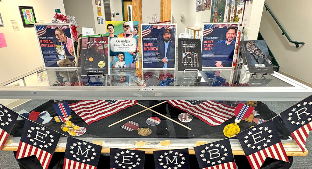 Sotelo added that future displays may include other forms of creative expression from veterans including visual art. The library will continue to look for new ways to honor veterans year-round.”