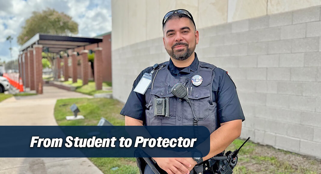 As one of South Texas College’s newest police officers, Tomas Jasso is achieving a long-awaited goal: to serve and protect the college that helped shape his future.