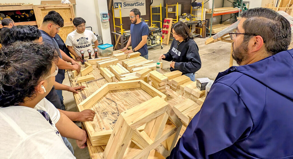 The project was a collaborative effort across multiple programs, including Construction Management as well as the Architecture Engineering and Design Technology (AEDT) program, which assisted with materials, tools and laser engravings.