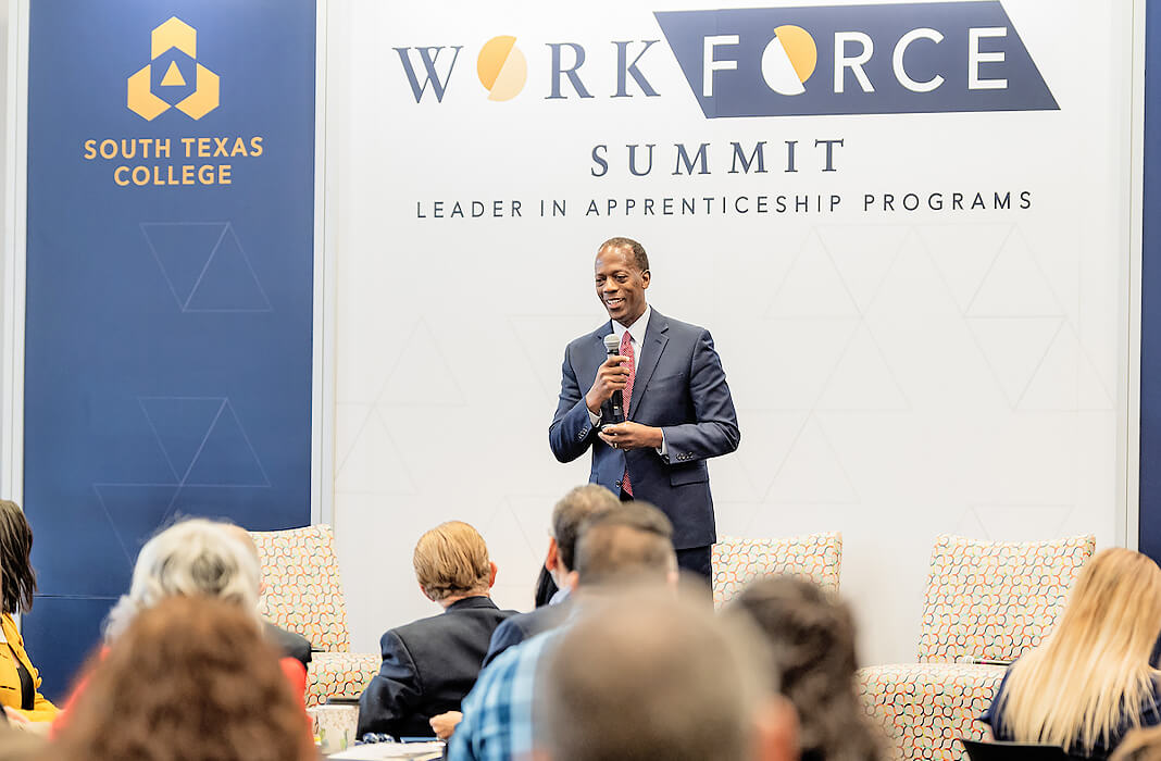 November is National Apprenticeship Month and to commemorate it, South Texas College, as a national leader in apprenticeships, recently hosted its 5th annual Workforce Summit, gathering hundreds of local and statewide workforce development leaders for a morning of speakers, a panel discussion and a check presentation from D. Wilson Construction.