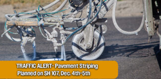 TRAFFIC ALERT- Pavement striping planned on SH 107, Dec. 4th-5th