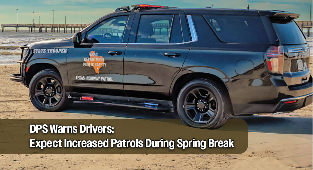 AUSTIN – The Texas Department of Public Safety (DPS) will increase patrols on roads beginning this weekend to ensure safe driving this spring break and St. Patrick’s Day. March 9-17, the Texas Highway Patrol (THP) will conduct its annual Spring Break and St. Patrick’s Day traffic enforcement campaign – looking for people who are speeding, not wearing their seat belts, driving while intoxicated or committing other traffic violations.