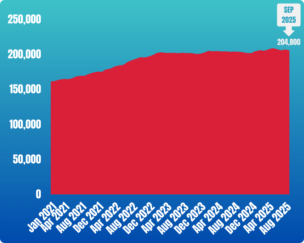 Despite recent flat performance, growth for this calendar year through September remains a positive 3,900 upstream jobs. At 204,800 upstream jobs, compared to the same month in the prior year, September 2025 jobs were up by 1,900, or 0.9 percent.