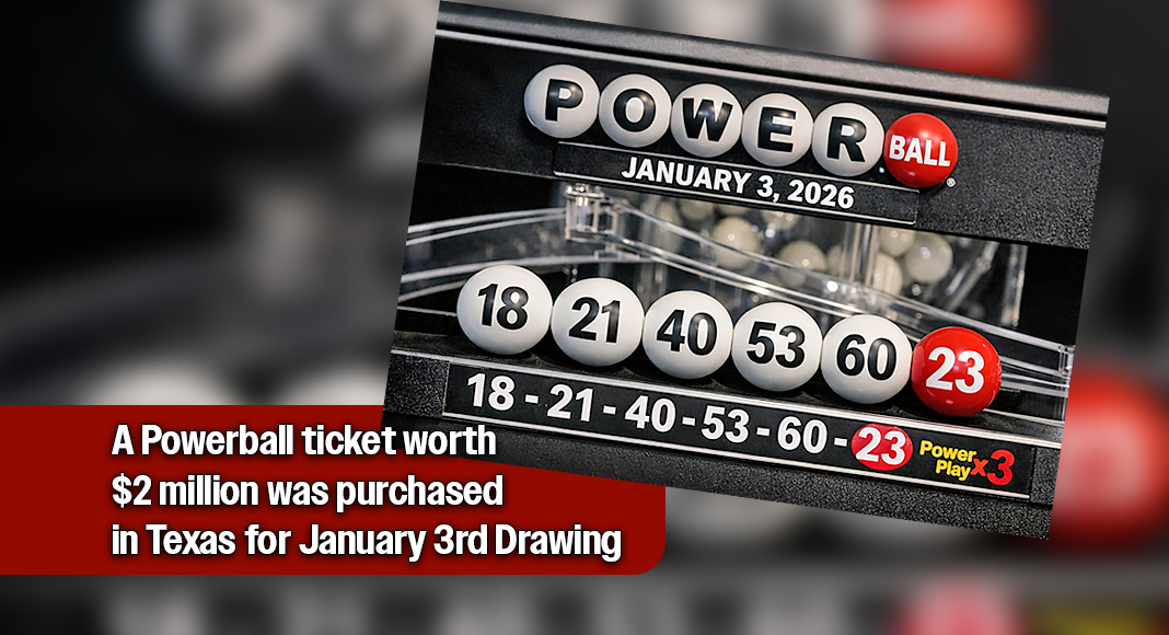 A Powerball ticket worth $2 million was purchased in Texas for the drawing held Saturday, Jan. 3, 2026, lottery officials said.