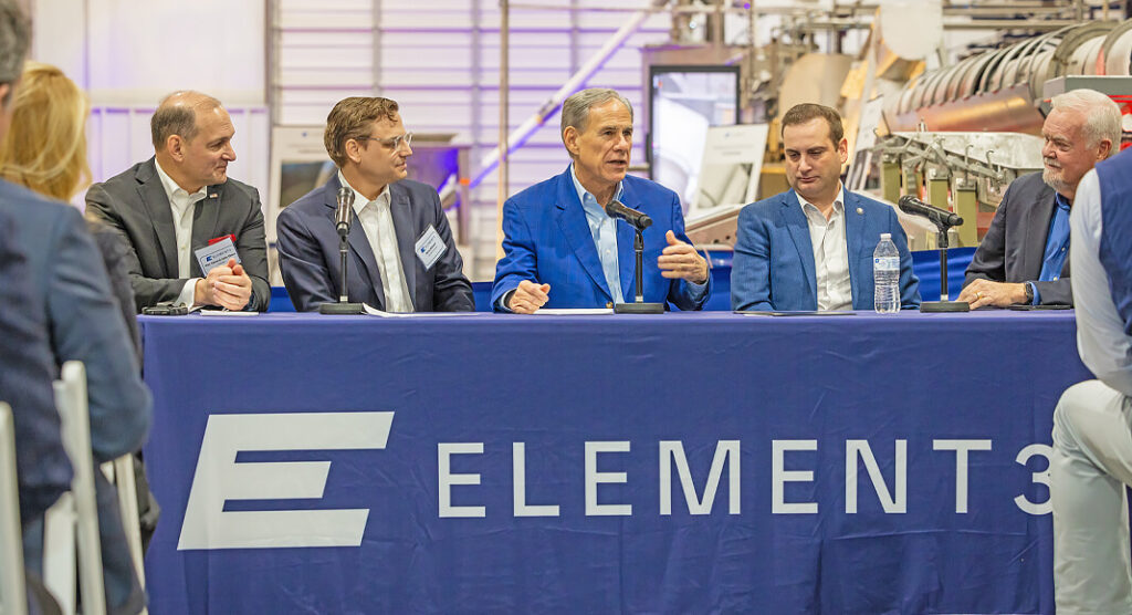 The Governor was joined by Railroad Commissioner Wayne Christian, U.S. Department of Energy director of the Office of Technology Commercialization and Chief Commercialization Officer Anthony Pugliese, U.S. Space Force mobilization assistant to the chief of space operations Major General John M. Olson (Ret.), and founder and CEO of Element3 Hood Whitson.