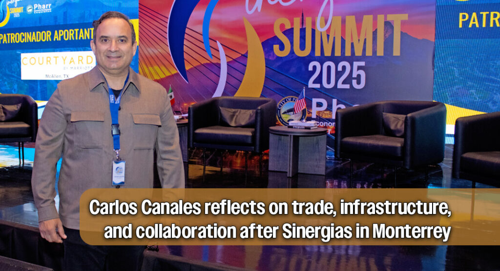 The Sinergias Summit 2025 in Monterrey, Mexico, brought together public and private sector leaders to discuss the future of cross-border trade between Texas and Mexico. Victor Perez, CEO and President of the Pharr Economic Development Corporation, developed the initiative. Among the panelists was Carlos Canales, founder and CEO of TCA Logistics and owner of TRANCASA, a fully integrated transportation and logistics operator based in the Rio Grande Valley.