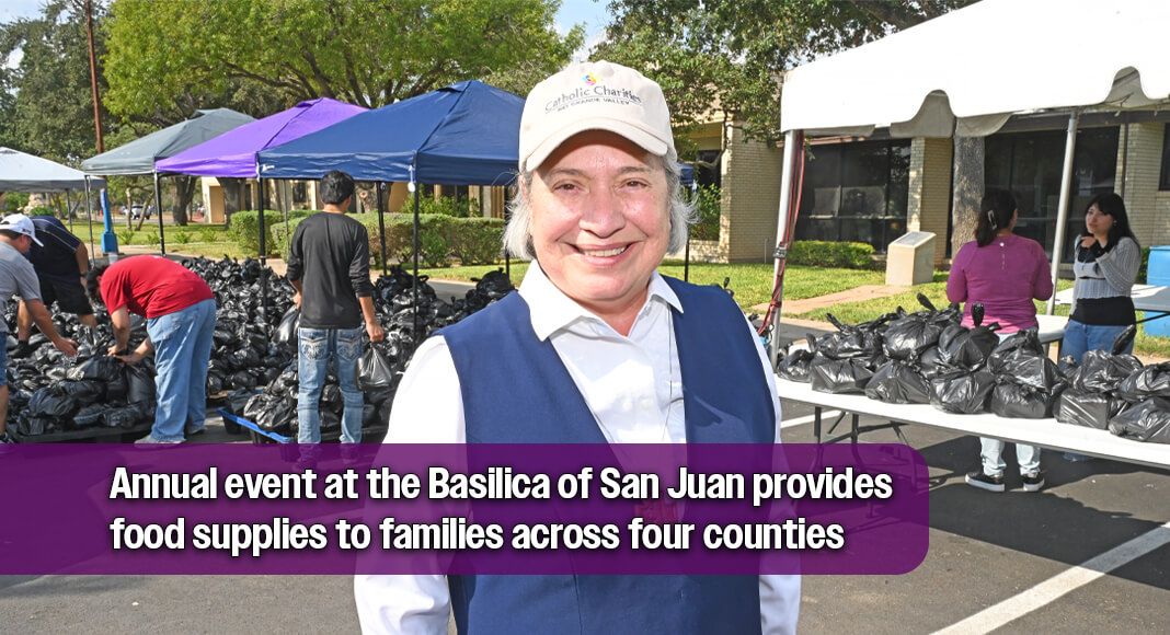 The Basilica of Our Lady of San Juan del Valle in San Juan, Texas, held its annual Sharing Basket Thanksgiving Food Distribution on November 25, 2025. The event, organized by Sister Norma Pimentel, brought together youth groups, families, Catholic schools, and volunteers from within and beyond the Rio Grande Valley to prepare and distribute Thanksgiving food supplies.