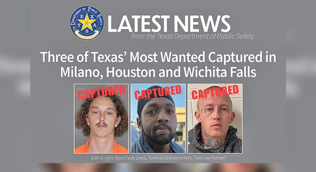 AUSTIN – Three of Texas’ 10 Most Wanted are back in custody following their recent arrests. Authorities captured Ryan Lewis in Milam Co., Tommie Kelly in Harris Co. and Tyler Palmer in Wichita Co. on Oct. 15, 22 and 23, respectively. A Crime Stoppers reward will not be paid in any of these arrests.