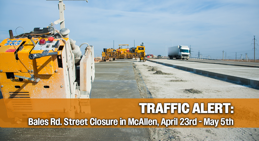 McALLEN, Texas – Bales Road will be closed to thru traffic between S. 10th St. and S. 2nd St. from April 23 through May 15 as part of the S. 2nd Street at Byron Nelson Drainage Improvements project, which includes installation of new drainage infrastructure to enhance roadway conditions and improve stormwater management.