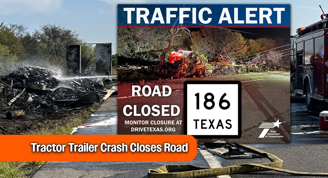 LINN – State Highway 186 remains closed, eastbound and westbound, from US 281 to FM 493 while road crews clear a tractor trailer crash.