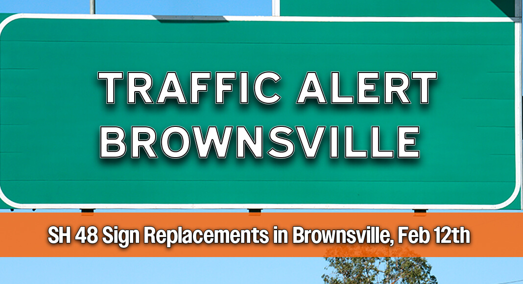BROWNSVILLE – The replacement of large overhead signs on northbound State Highway 48 (SH 48), between FM 802 (Ruben M. Torres Blvd.) and Indiana Avenue near the Port of Brownsville, will require right lane and exit ramp closures, Thursday, February 12.