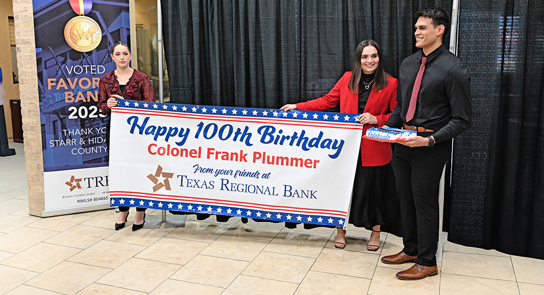 Texas Regional Bank’s McAllen South McColl Branch hosted its Fourth Annual Veterans Celebration on Wednesday, November 5, honoring two of the Rio Grande Valley’s most respected veterans — Texas Senator Juan “Chuy” Hinojosa, 79, and Colonel Frank Plummer, turning 100 years old this year.