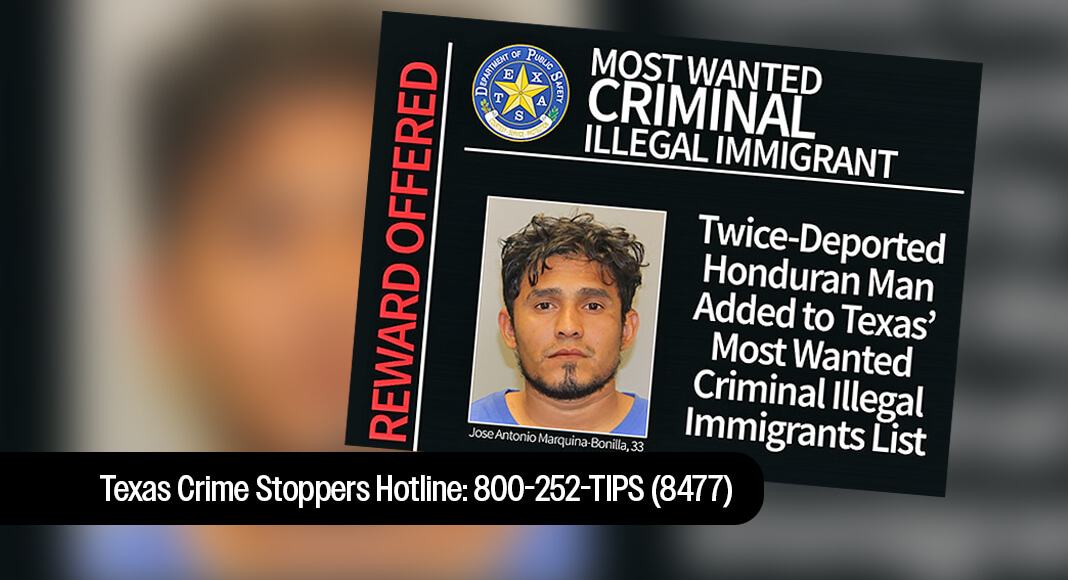 AUSTIN – The Texas Department of Public Safety (DPS) has added Jose Antonio Marquina-Bonilla—a criminal illegal immigrant who has been deported back to Honduras multiple times—to Texas’ 10 Most Wanted Criminal Illegal Immigrants List. Texas Crime Stoppers is now offering a cash reward of up to $5,000 for information leading to his arrest. All tips are guaranteed to be anonymous.