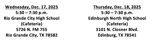 Written comments from the public regarding the proposed project are requested and may be submitted by mail to the Pharr District Office, Attn: Edward Paradise, Jr., Environmental Project Planner, 600 W. Interstate 2, Pharr, TX 78577.Written comments may also be submitted by email to PHR_SL195_Extension@txdot.gov. All comments must be received on or before Monday, Jan. 12, 2026. Responses to comments received will be available online at www.txdot.gov once they have been prepared.