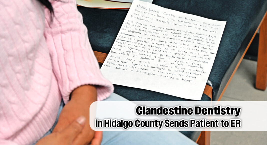 A Hidalgo County resident is recovering after a series of illegal dental procedures nearly cost her life. The woman, who asked to remain anonymous, described undergoing three extractions performed by an unlicensed individual operating out of a home. She shared her experience during a press conference on July 25, 2025, at the McAllen office of Dr. Carlos Cruz, an oral and maxillofacial surgeon.