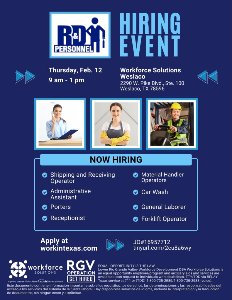 Below you will find our Hot Jobs for this week, all these jobs and many more are available on www.workintexas.com.