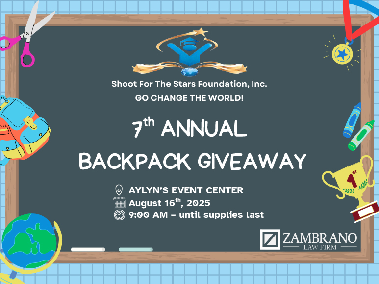 “Giving back to the community is something the Shoot For The Stars Foundation—a nonprofit founded by Jorge Zambrano, brother of attorney Jesse Zambrano, to host backpack and turkey giveaways—takes great pride in,” event organizers stated. “Our goal is simple: by ensuring every student has access to the school supplies they need to succeed, community events like backpack giveaways play a vital role in supporting our community.”